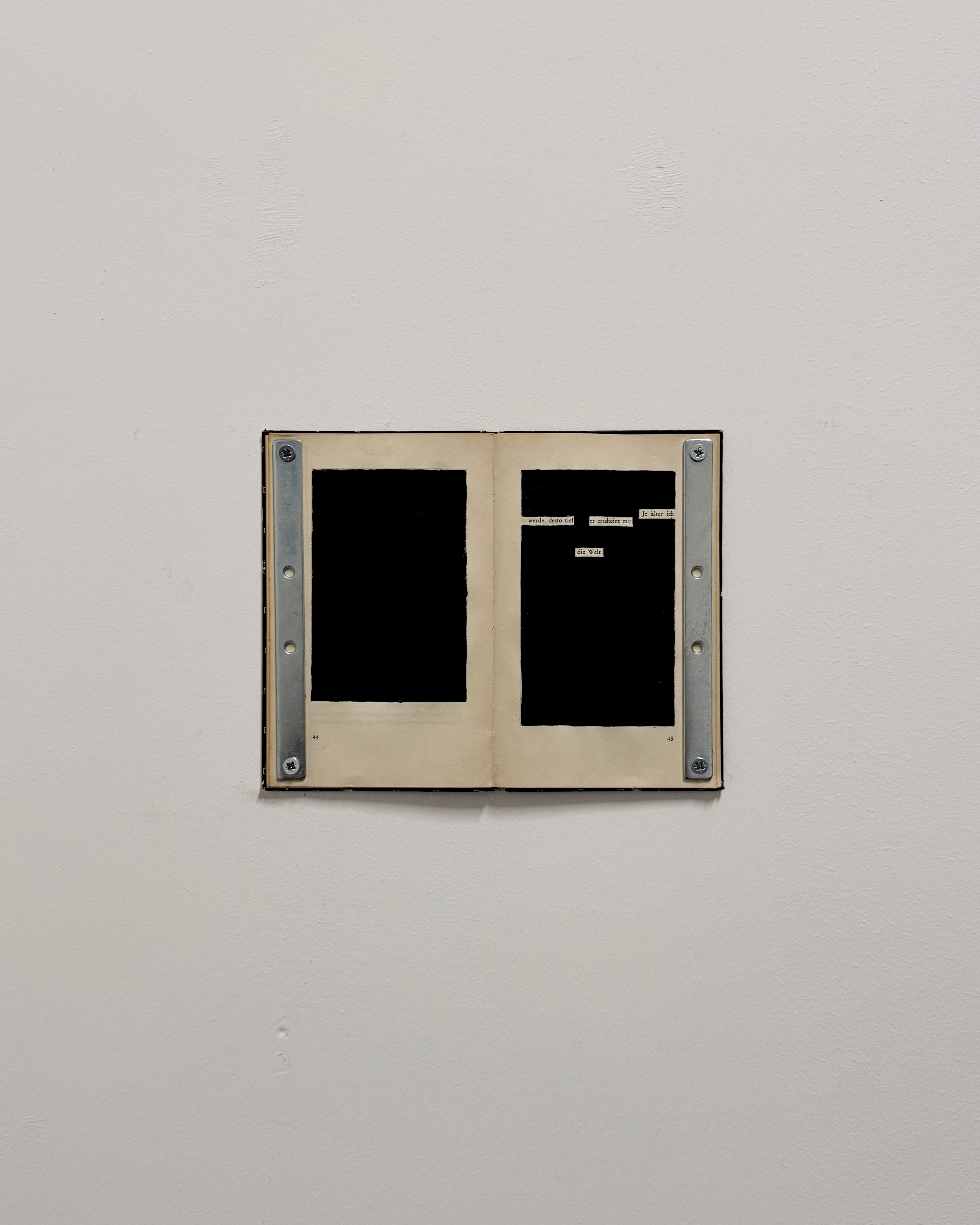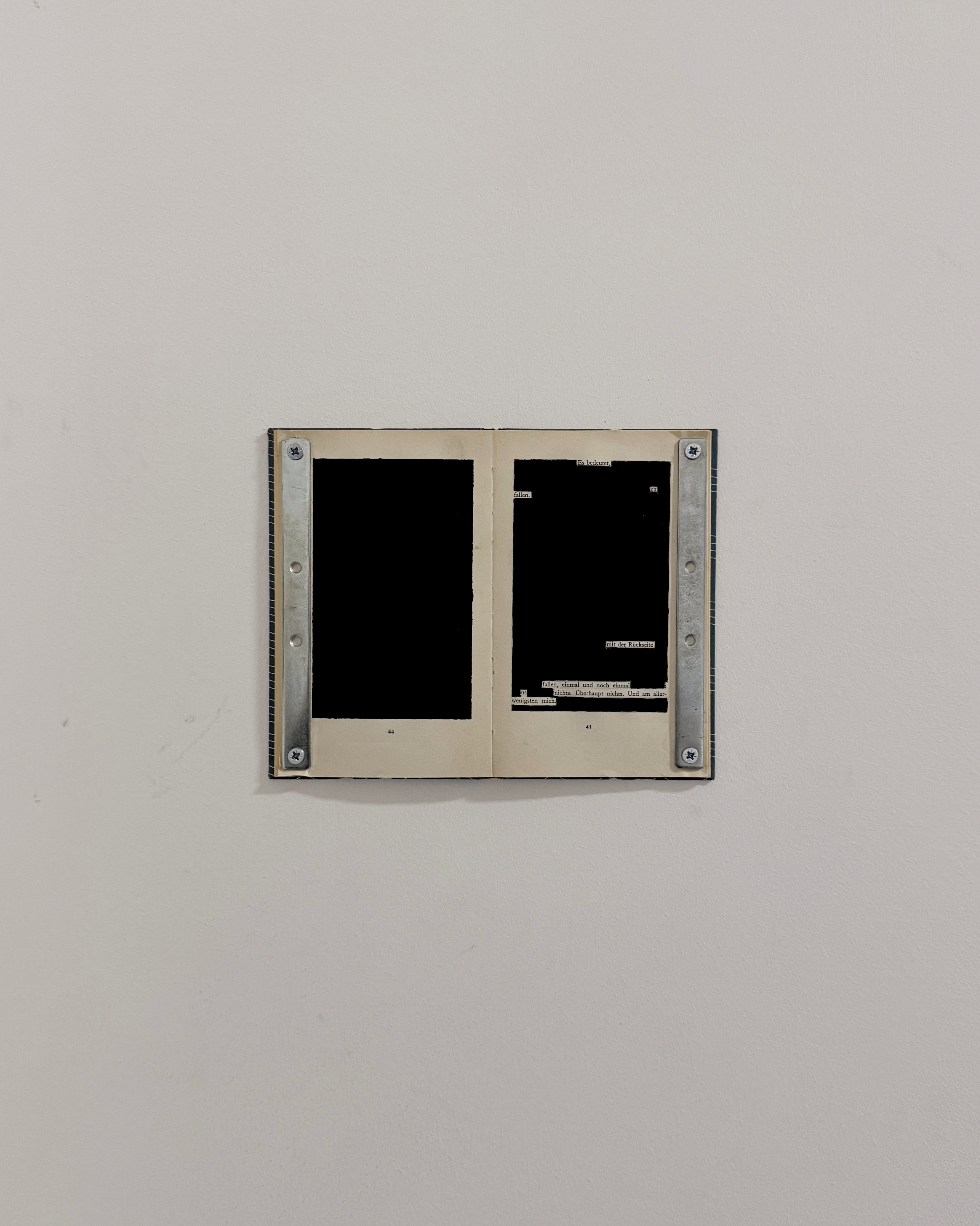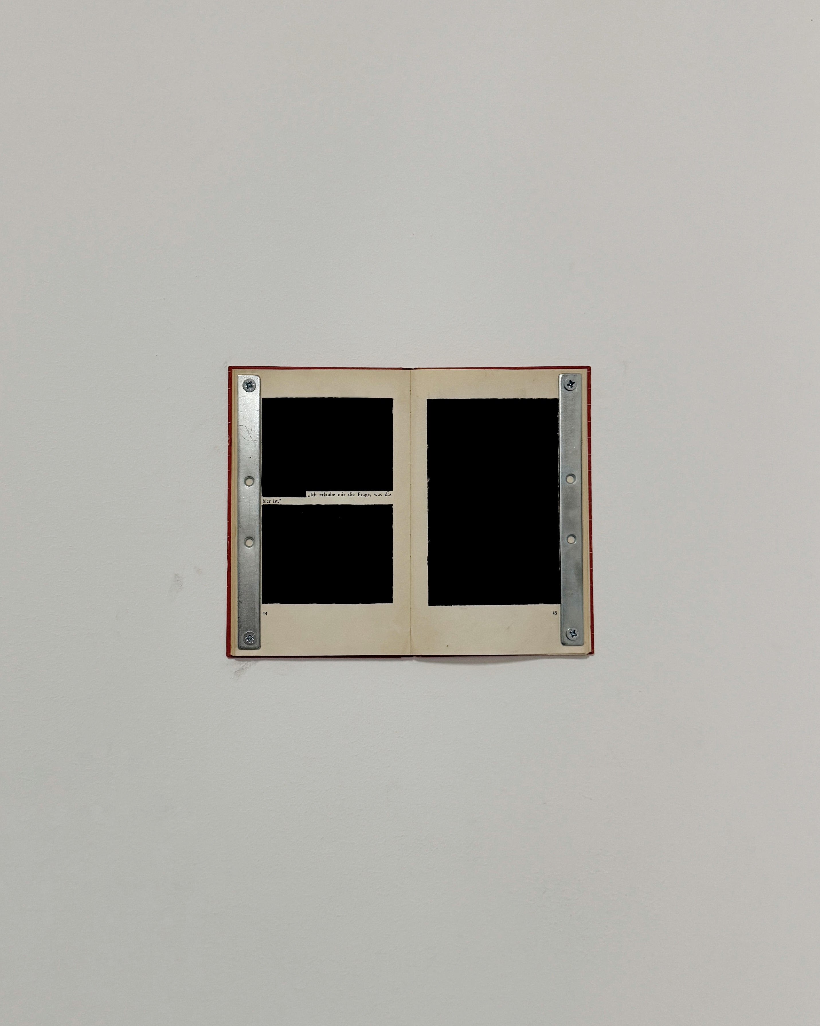 2024, 24,5×19,5cm each, books, painting, metal, screws, selected words